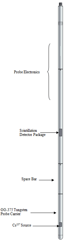 This density tool uses a single detector, which collects formation density data in a spherical radius slightly larger than the source-detector spacing. In comparison to Dual Detector Density, this tool is lightweight, more cost effective, and designed with a thin diameter for use in 2 inch holes. It has the option of being used as a simple natural gamma tool, without bowspring for 2 inch tubes, or with a bowspring as side-wall density.