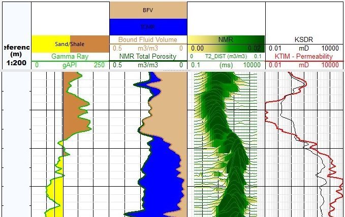 Borehole Magnetic Resonance is specifically tuned to sense the fluid-filled pores only, so measurement accuracy is completely unaffected by matrix composition, with no special calibrations to formation lithology required. This response capability contrasts completely with the lithology-dependent measurement principle of conventional logging tools.